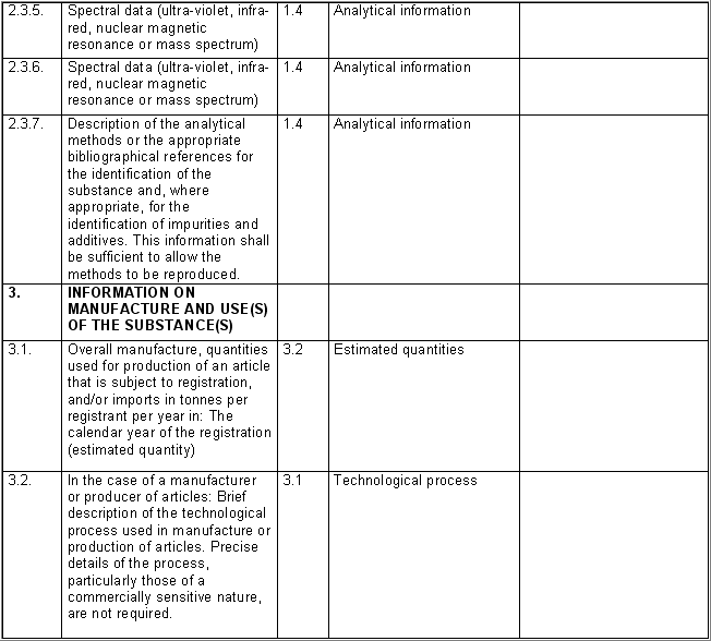 This specification table does not give any guidance on what data requirements apply for a given submission. Refer to the relevant REACH documentation thereof.